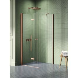 Das Modell New Soleo Copper Brushed verfügt über elegante Kupferdetails mit gebürsteter Oberfläche. Die Duschkabinen sind mit sicheren, 6 mm starken Hartglasplatten mit Active Shield 2.0-Schutzbeschichtung ausgestattet. Sie verfügen über ein Säulenscharnier, mit dem sich die Tür nach außen und innen öffnen lässt. Das Produkt kann mit oder ohne Duschwanne installiert werden.