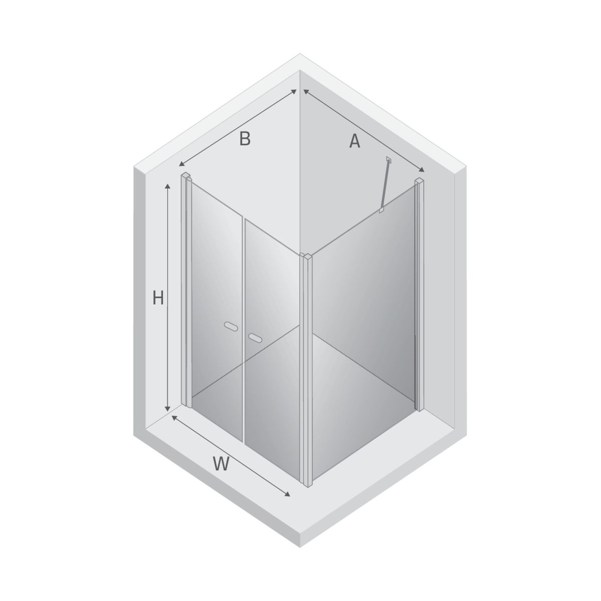 Das Modell New Soleo verfügt über elegante, verchromte Details mit glänzender Oberfläche. Die Duschkabinen mit schräger Stütze sind mit sicheren, 6 mm starken Hartglasscheiben mit Active Shield 2.0-Schutzbeschichtung ausgestattet. Sie verfügen über ein Säulenscharnier, mit dem sich die Tür nach außen und innen öffnen lässt. Das Produkt kann mit oder ohne Duschwanne installiert werden. Version mit schräger Stütze.