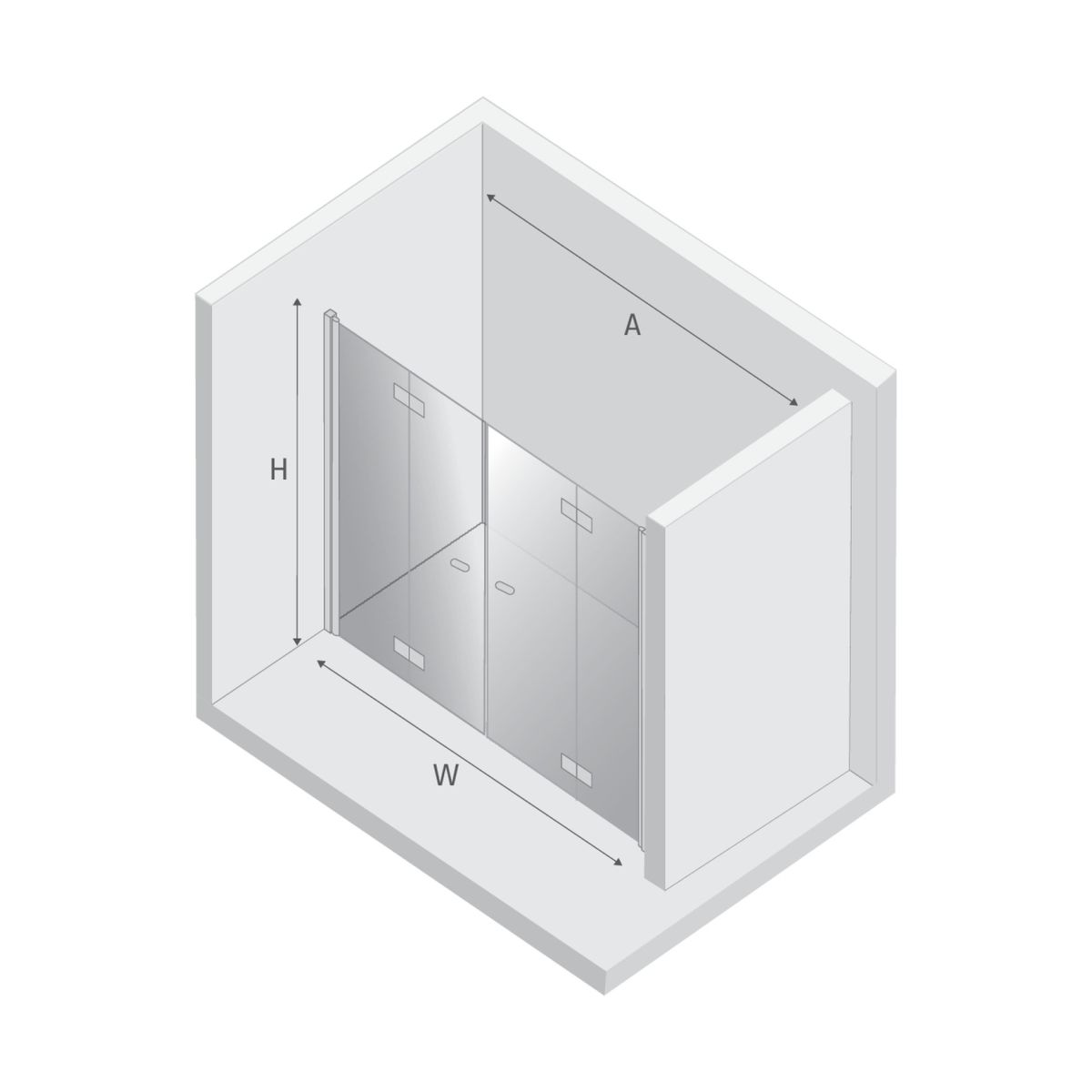 Das Modell New Soleo verfügt über elegante, verchromte Details mit glänzender Oberfläche. Die Duschtüren sind mit 6 mm starken Sicherheitsgläsern mit Active Shield 2.0-Schutzbeschichtung ausgestattet. Sie verfügen über ein Säulenscharnier, mit dem sich die Türen nach außen und innen öffnen lassen. Das Produkt kann mit oder ohne Duschwanne installiert werden.
