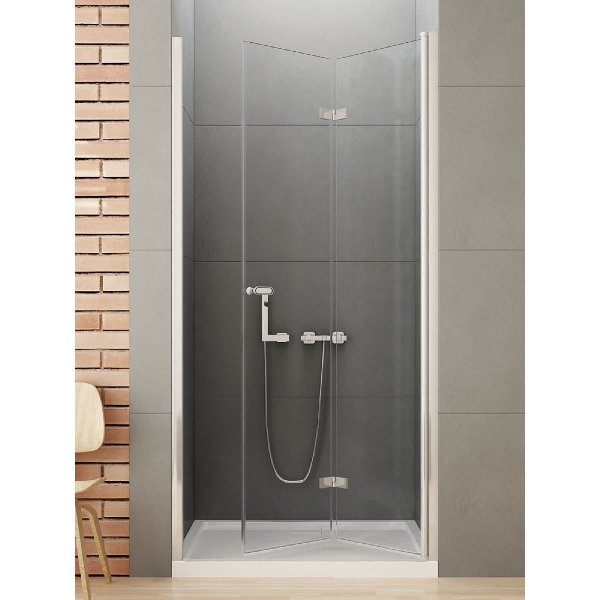 Das Modell New Soleo verfügt über elegante, verchromte Details mit glänzender Oberfläche. Die Duschtüren sind mit 6 mm starken Sicherheitsgläsern mit Active Shield 2.0-Schutzbeschichtung ausgestattet. Sie verfügen über ein Säulenscharnier, mit dem sich die Türen nach außen und innen öffnen lassen. Das Produkt kann mit oder ohne Duschwanne installiert werden.