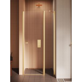 New Trendy New Soleo Duschtüren 90 cm aufklappbar gold gebürstet/durchsichtiges Glas D-0771A