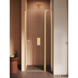 New Trendy New Soleo Duschtüren 90 cm aufklappbar gold gebürstet/durchsichtiges Glas D-0771A-WK