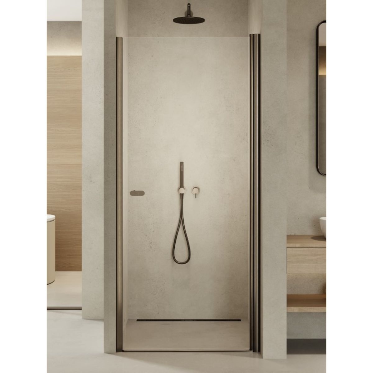 Das Modell New Soleo Gunmetal Brushed verfügt über elegante schwarze Details mit gebürsteter Oberfläche. Die Duschtüren sind mit einer 6 mm starken Sicherheitsglasplatte mit Active Shield 2.0-Schutzbeschichtung ausgestattet. Sie verfügen über ein Säulenscharnier, mit dem sich die Tür nach außen und innen öffnen lässt. Das Produkt kann mit oder ohne Duschwanne installiert werden.