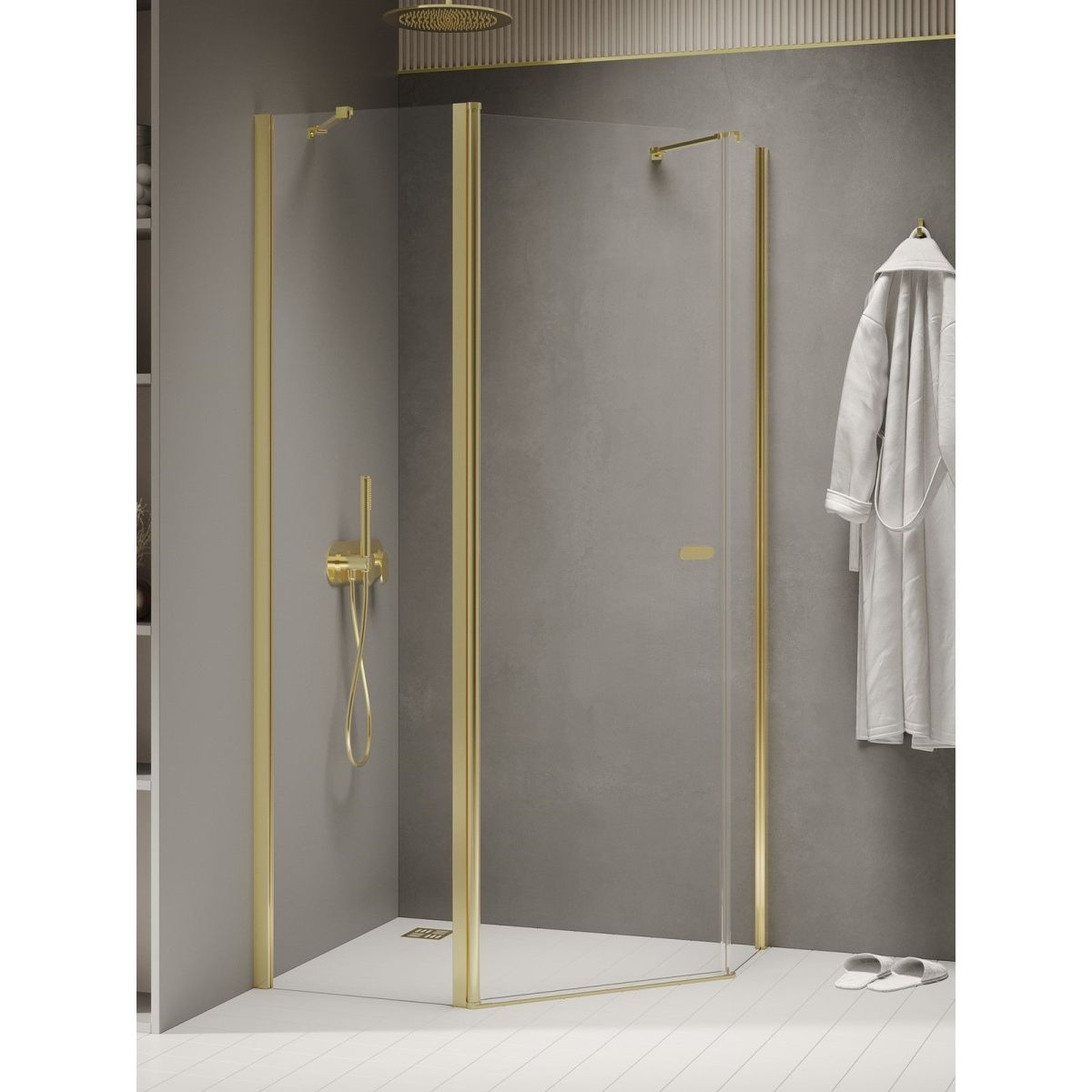 New Trendy New Soleo Light Gold Dusche 100x80 cm gold Glanz/durchsichtiges Glas K-1666