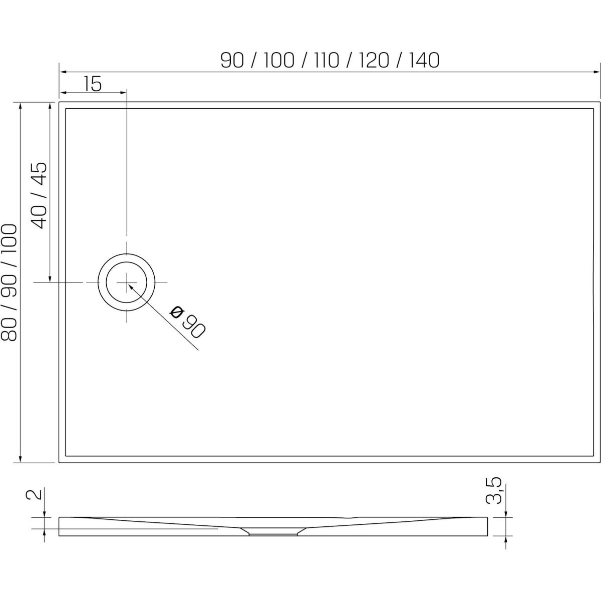 New Trendy Nex Rechteckige Duschwanne 100x90 cm weiß B-0458