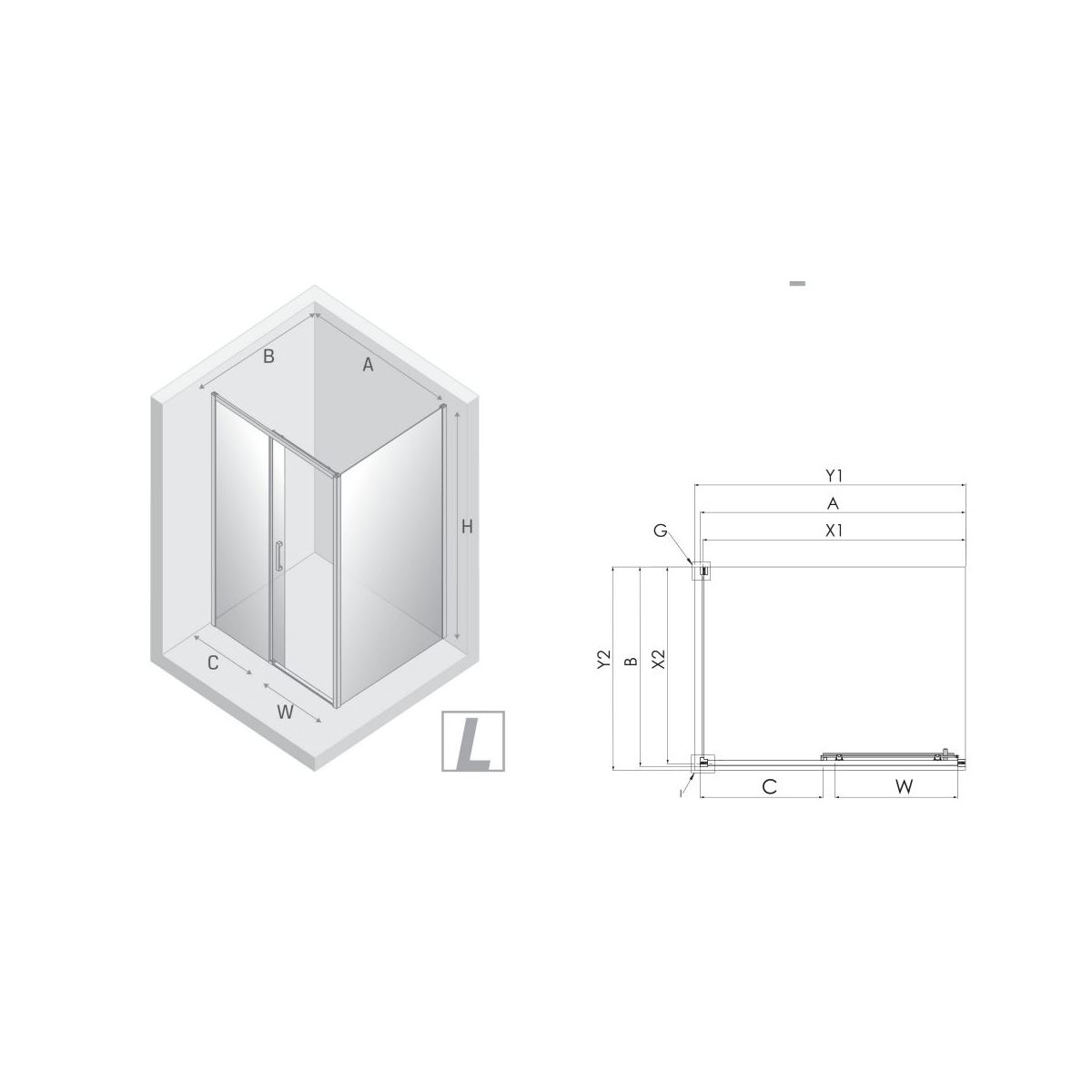 - ACHTUNG! Bei der Montage der Kabine auf Fliesen unter Verwendung einer linearen Entwässerung müssen Sie unbedingt die Größe von der Achse der Scheibe X1 und X2 überprüfen