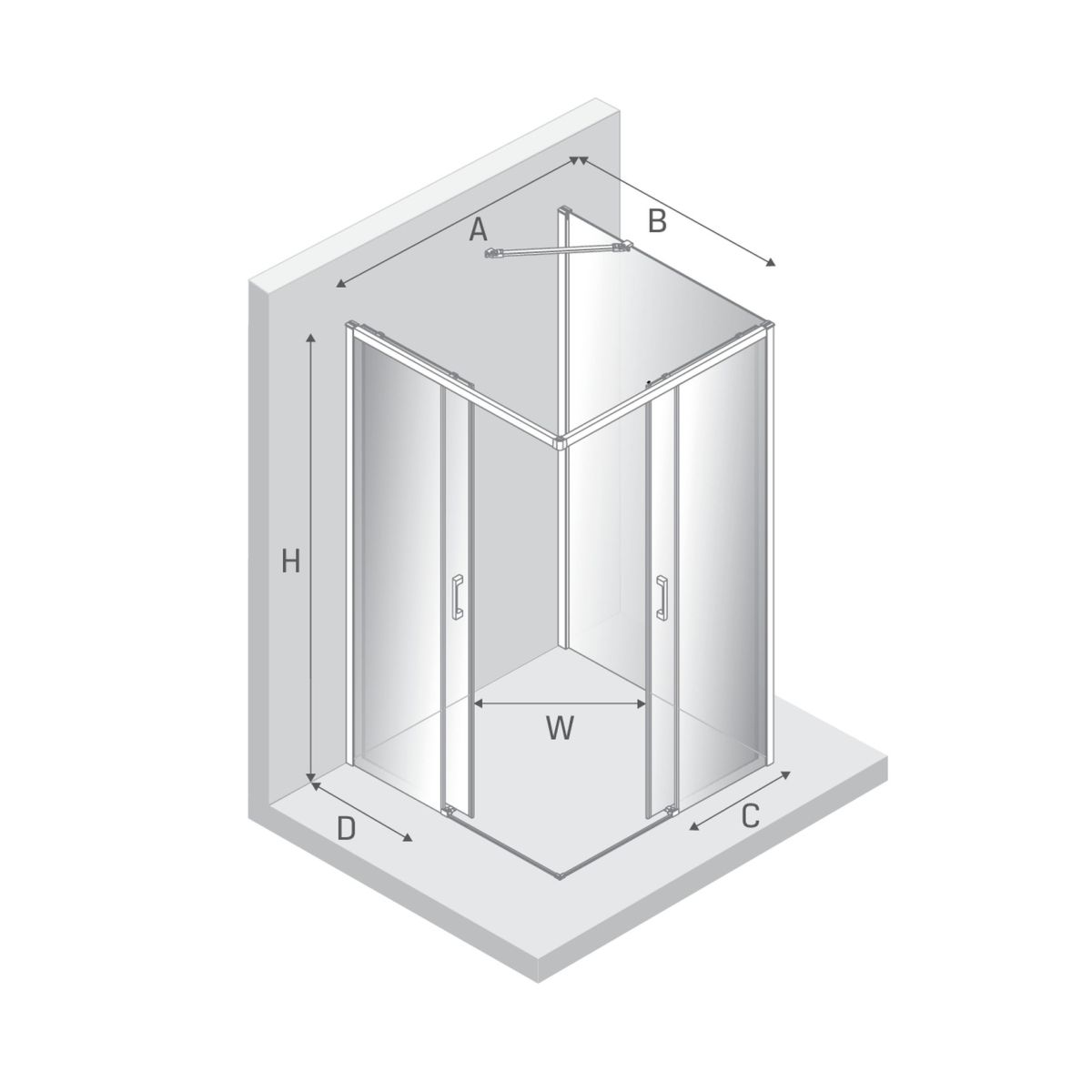- Breite der festen Wand (D): 44 cm