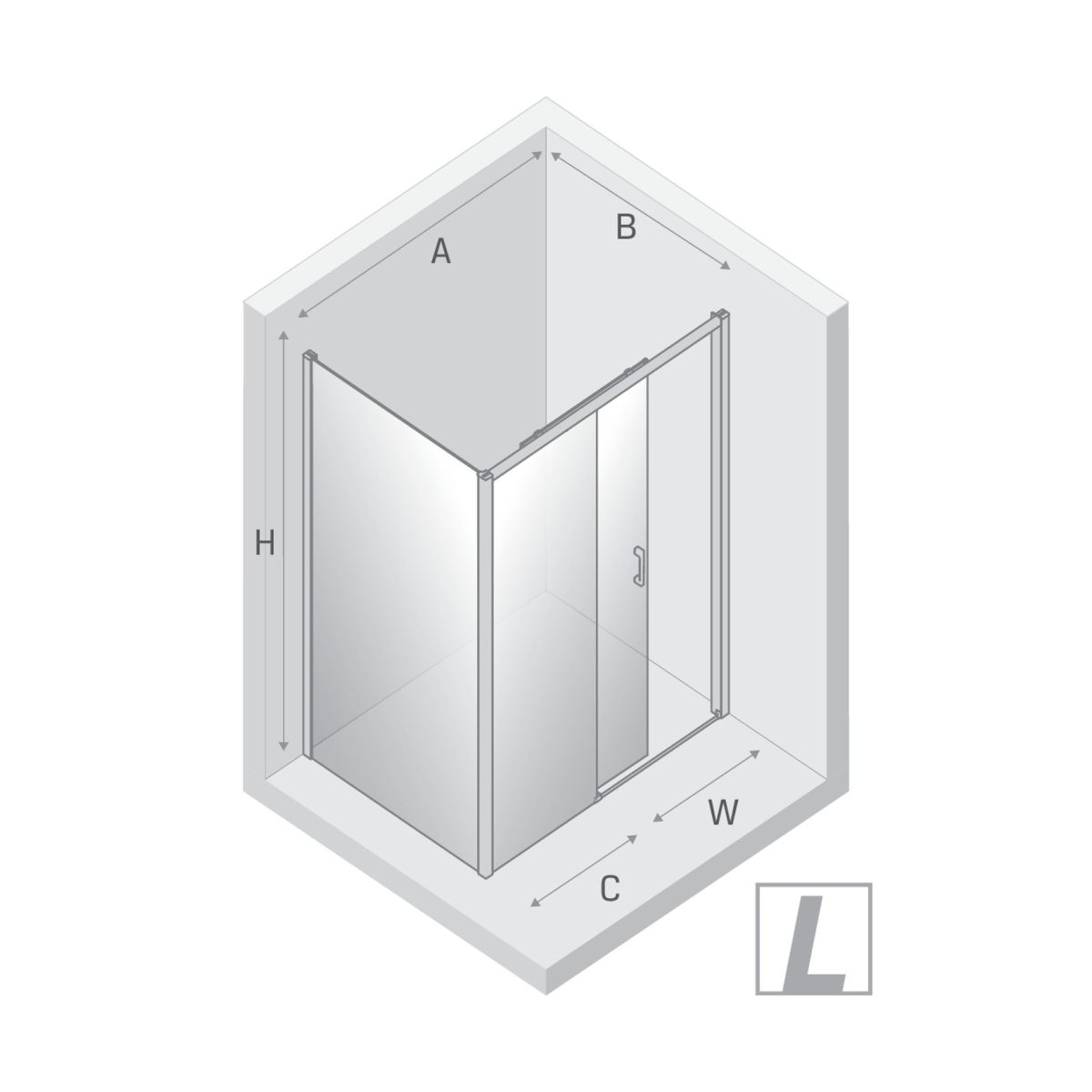 - Breite der festen Wand (C): 54 cm