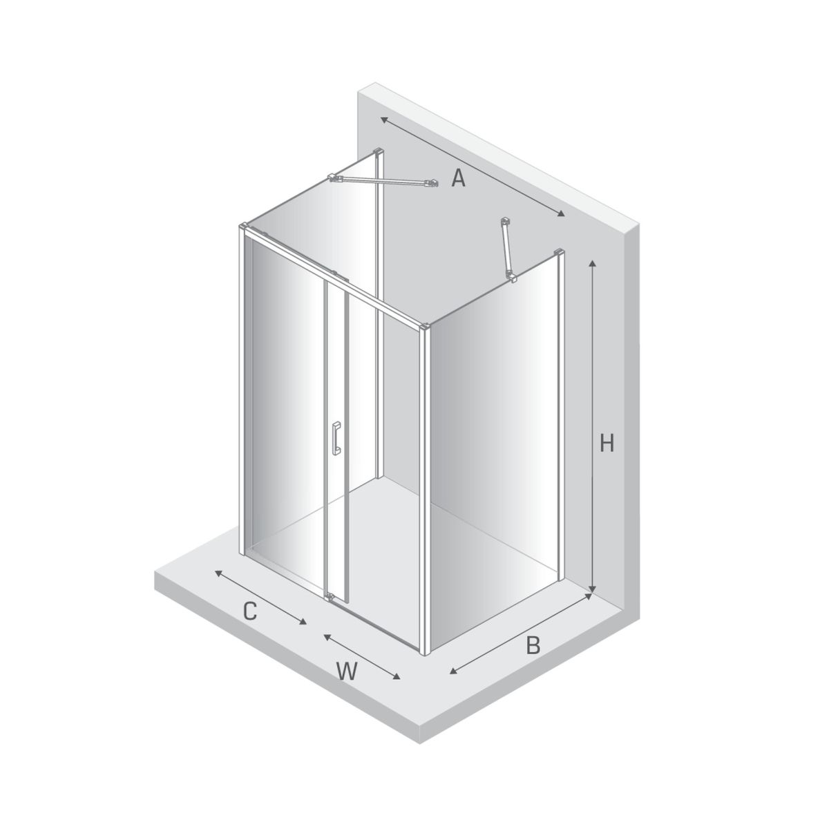 - Breite der festen Wand (C): 64 cm