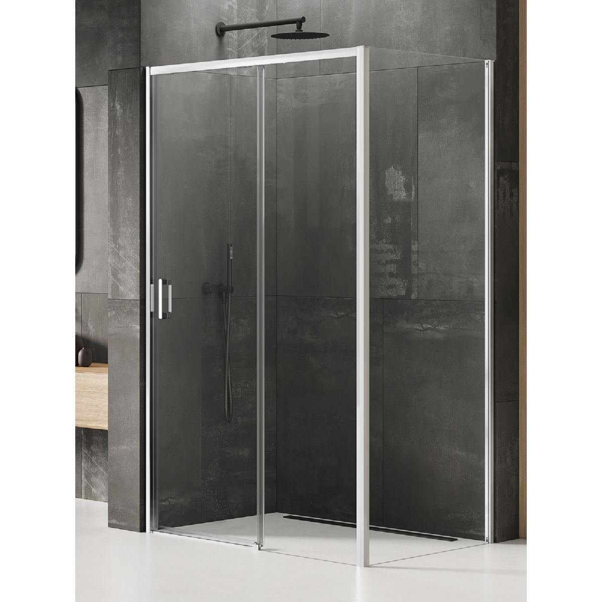 Das Modell Prime verfügt über elegante, verchromte Details mit glänzender Oberfläche. Es ist mit einem Schiebesystem ausgestattet, das ein reibungsloses Öffnen der Türen gewährleistet. Dank der verwendeten Technologie ist die Montage einer unteren Laufschiene nicht mehr erforderlich. Prime verfügt über sichere, 6 mm dicke Hartglasplatten mit einer Active Shield 2.0-Schutzbeschichtung. Die Duschkabinen können sowohl mit als auch ohne Duschwanne montiert werden. Das Modell ist mit einem Schnellmontagesystem ausgestattet, das die Verbindung der Laufschiene der Kabine mit den Wandprofilen erleichtert.
