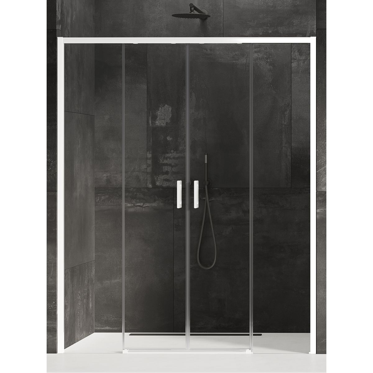 New Trendy Prime White Duschtüren 160 cm Schiebe- weiß Matte/durchsichtiges Glas D-0437A