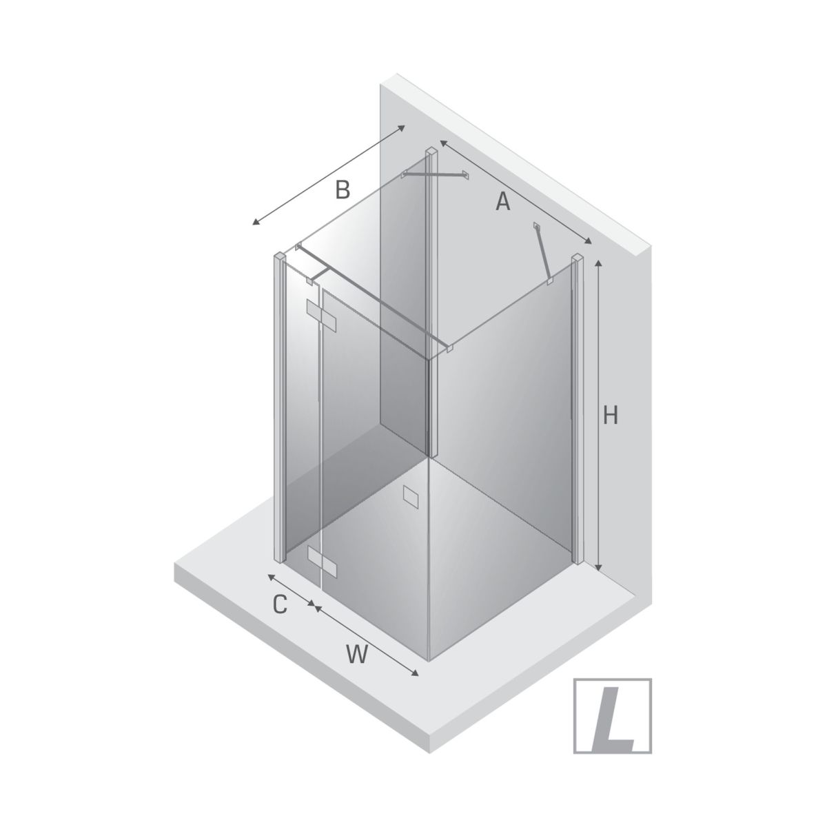 - Breite der festen Wand (C): 34,5 cm