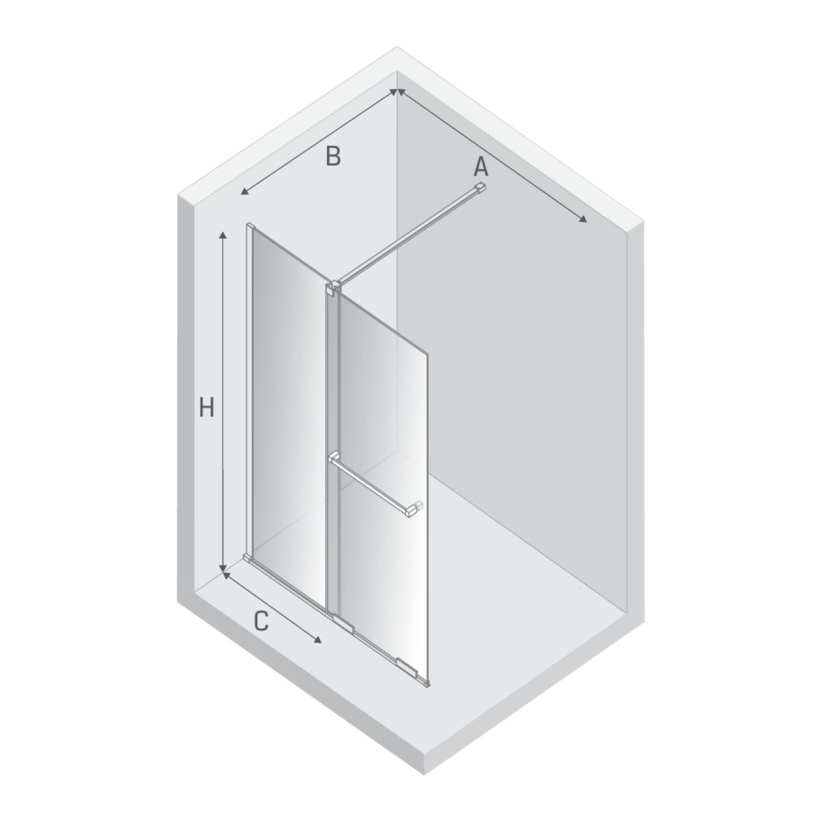 - Breite der festen Wand (C): 59,5 cm