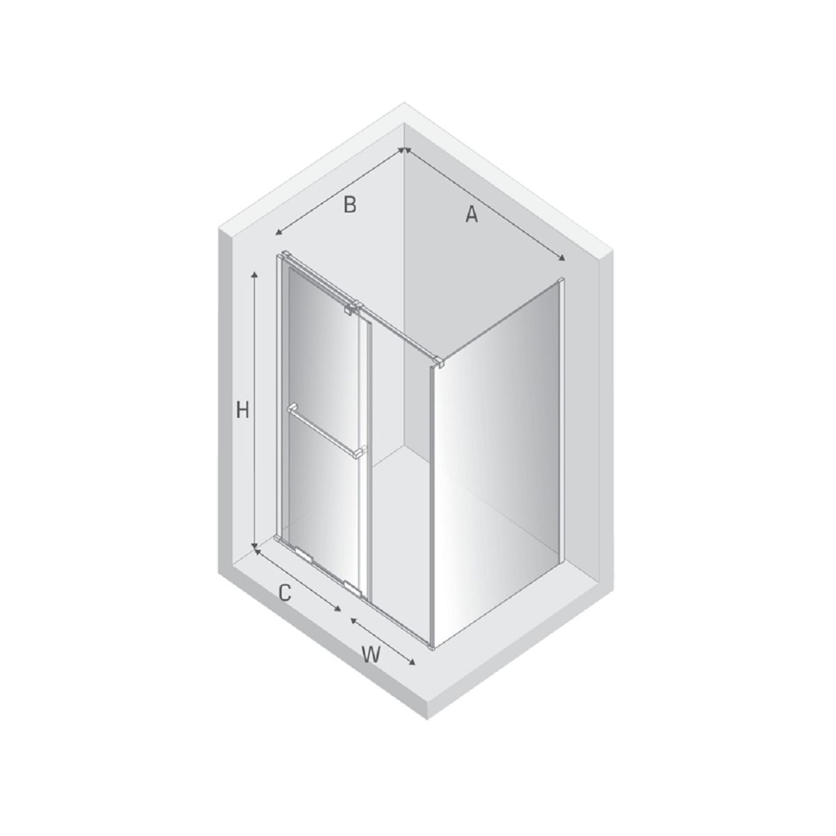 - Breite der festen Wand (C): 57,5 cm