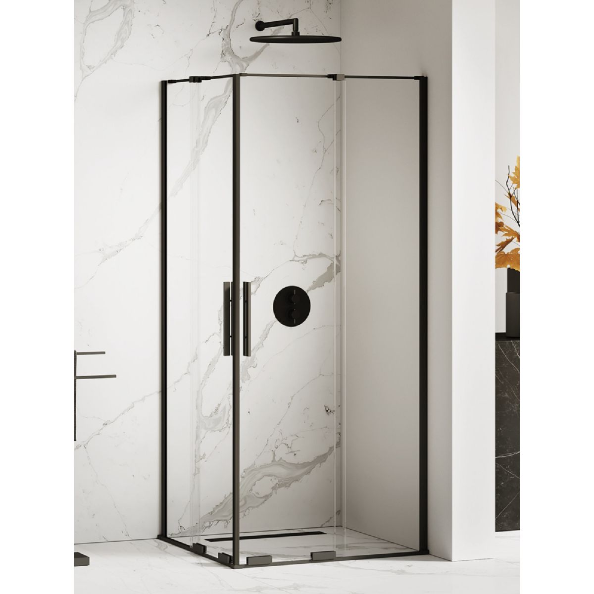 New Trendy Smart Black Dusche 80x80 cm quadratisch schwarz Matte/durchsichtiges Glas EXK-4159