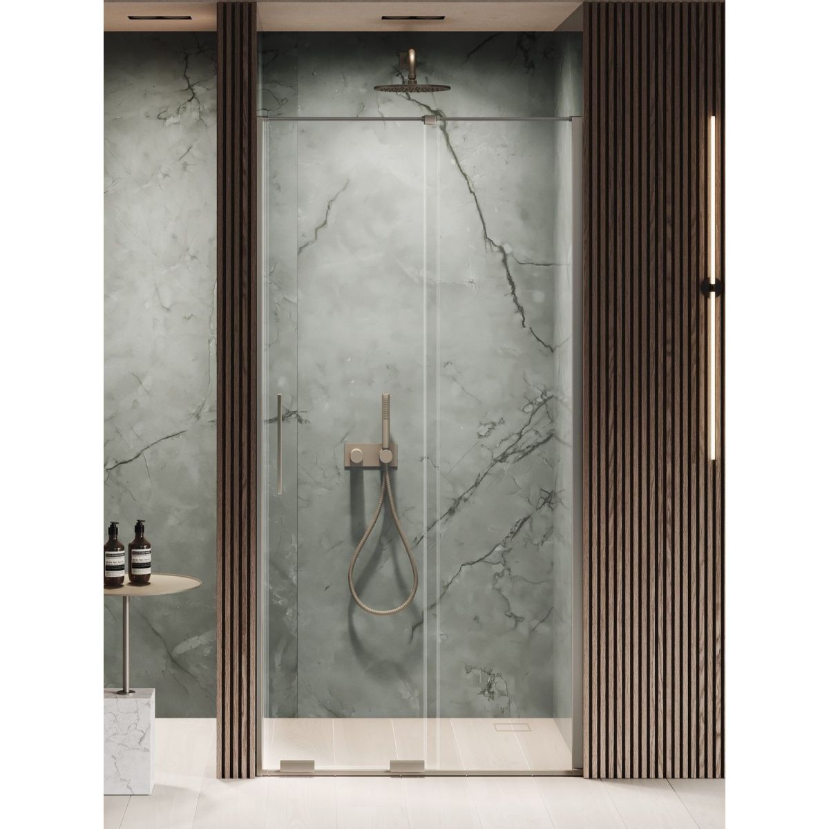 New Trendy Smart Duschtüren 130 cm Schiebe- gunmetal gebürstet/durchsichtiges Glas EXK-7818