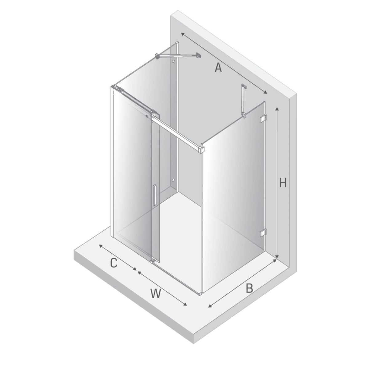 - Breite der festen Wand (C): 61 cm