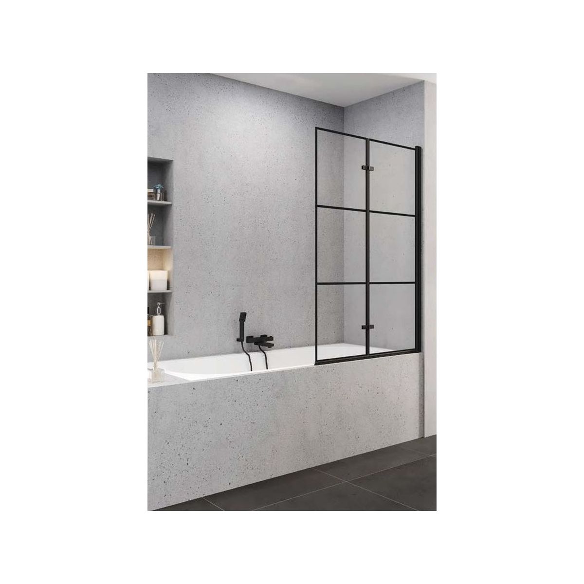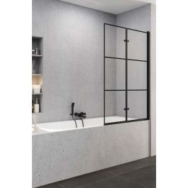 New Trendy Superia Black Badewannenabtrennung 100 cm zweigeteilt schwarz Matte/durchsichtiges Glas P-0055