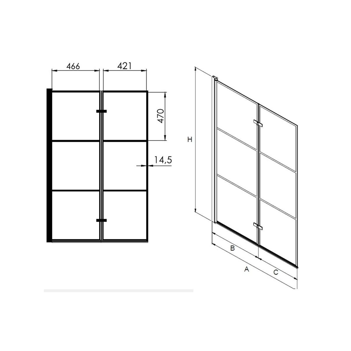 Der Preis gilt für die rechte Duschwand. Die technische Zeichnung zeigt die linke Duschwand.