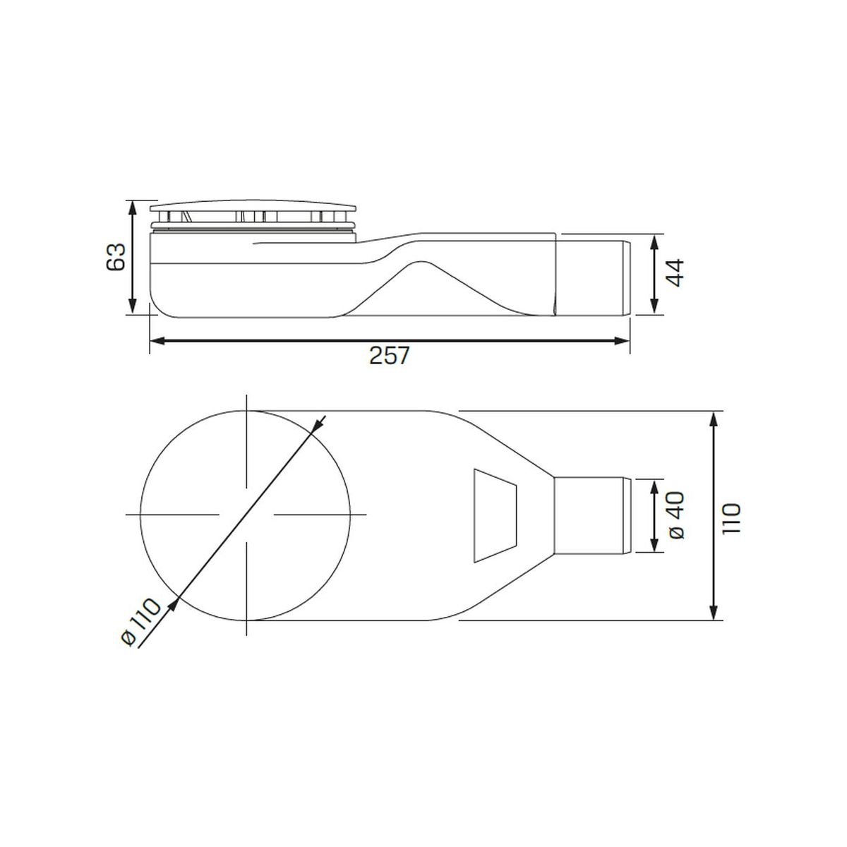 - Abflussdurchmesser: 90 mm