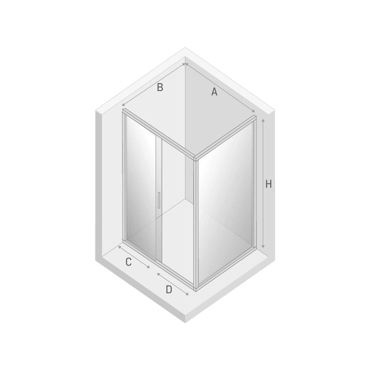 - Gesamtbreite der Tür mit fester Wand (A): 118,5-120 cm