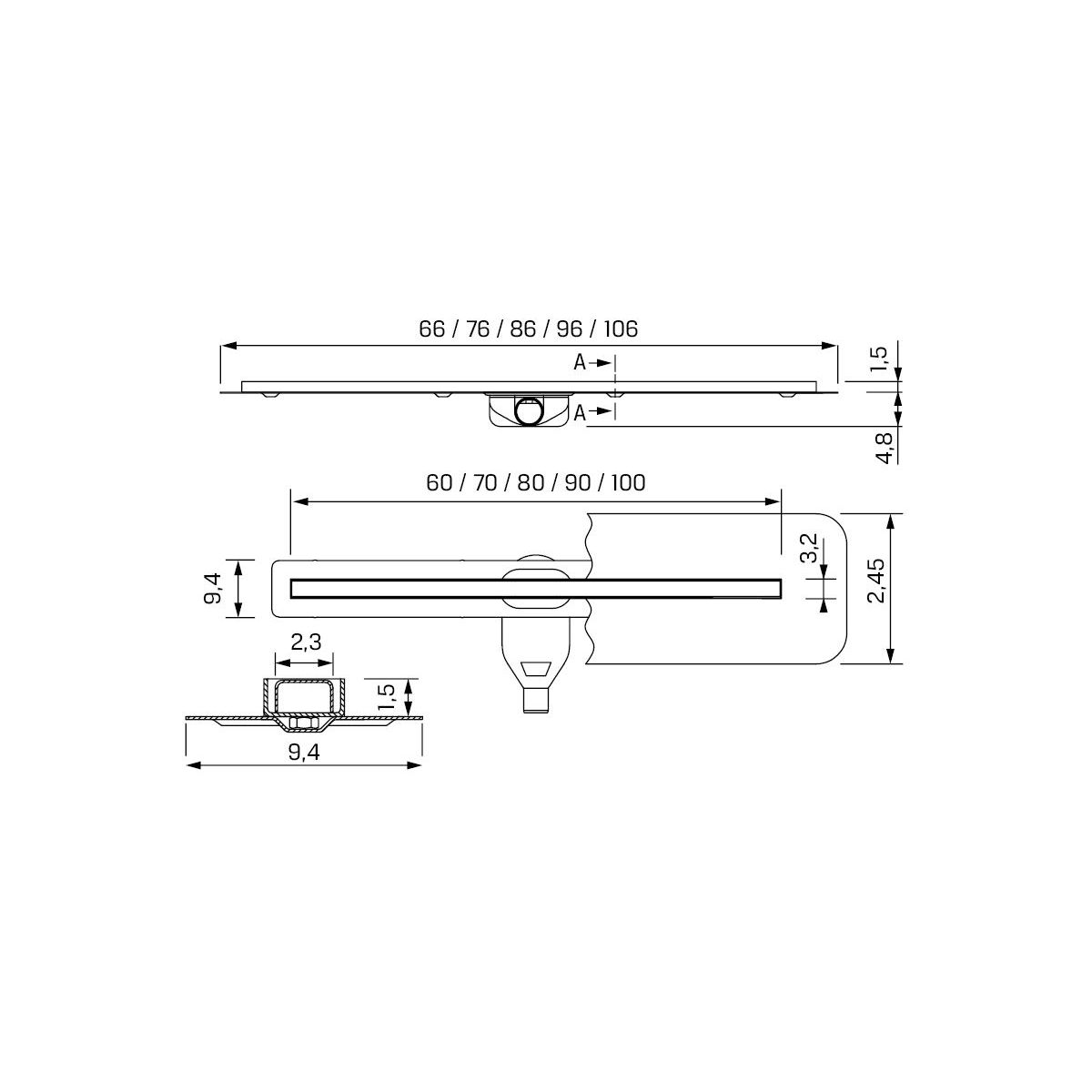 New Trendy Visio Slim Black Linienablauf 70 cm schwarz OL-0077