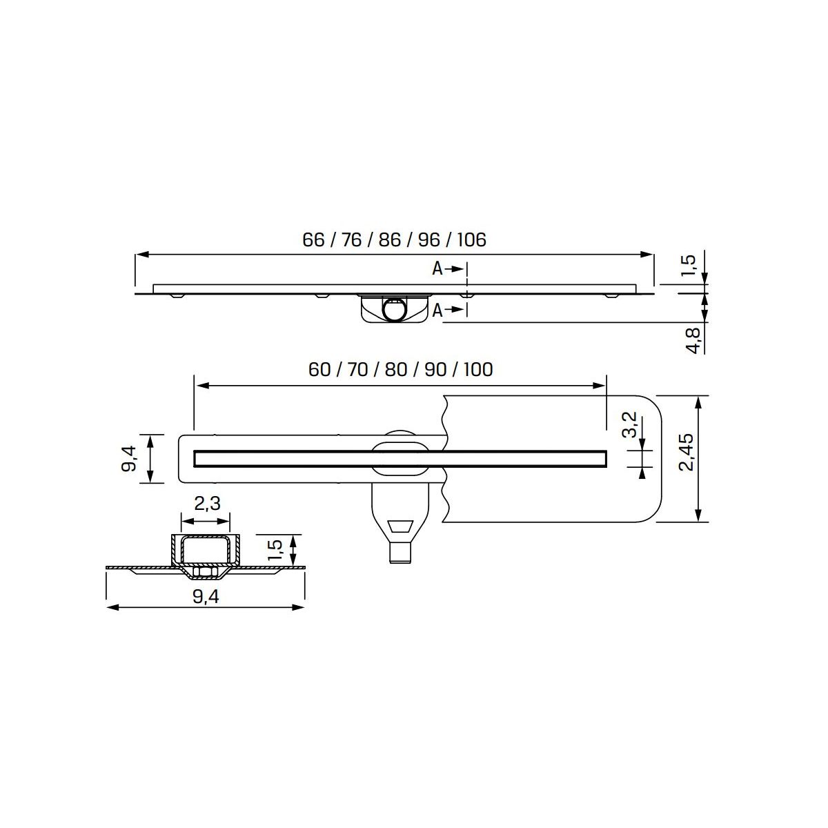 New Trendy Visio Slim Gold Linienablauf 80 cm gold OL-0083