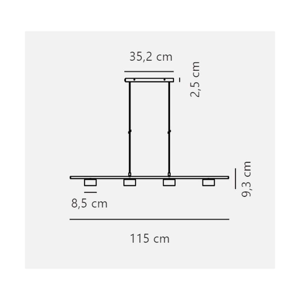 - Abmessungen der Deckenkappe: 35 cm x 9 cm x 2,5 cm