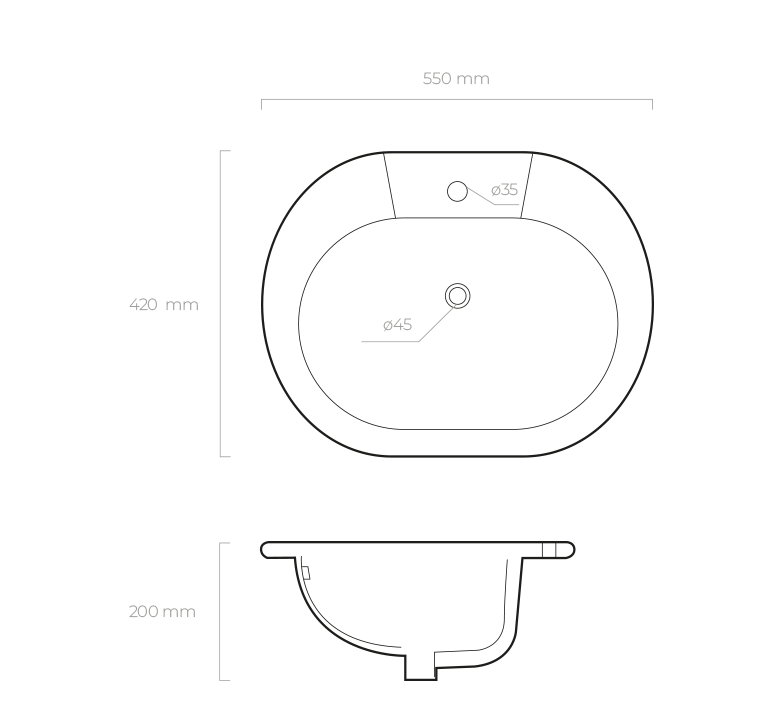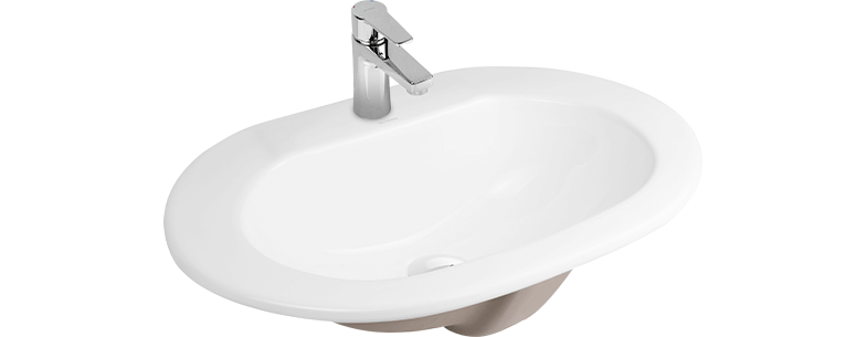 Auf der Tischplatte ist nur der Flansch/Rand des Beckens sichtbar, was die Sauberkeit rund um das Becken erleichtert. Wir empfehlen die Verwendung eines Klick-Klack-Stopfens (mit Überlauf) aus den Serien Halsa und Halsa (S).