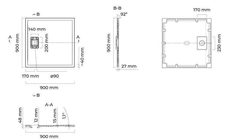 - Quadratduschwanne