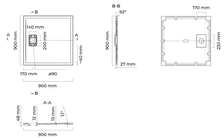 - Quadratduschwanne