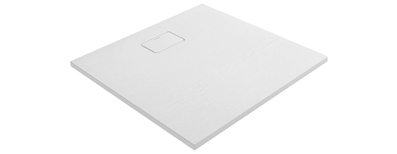 Duschwanne hat eine ästhetisch ansprechende Ablaufabdeckung aus dem gleichen Material wie die Duschwanne. Textur auf der Oberfläche der Duschwanne mit Gleitschutzeigenschaften. Die Duschwanne kann auf nicht standardisierte Maße zugeschnitten werden (eigener Zuschnitt).