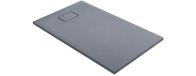 Duschwanne hat eine ästhetisch ansprechende Ablaufabdeckung aus dem gleichen Material wie die Duschwanne. Textur auf der Oberfläche der Duschwanne mit Gleitschutzeigenschaften. Die Duschwanne kann auf nicht standardisierte Maße zugeschnitten werden (eigener Zuschnitt).