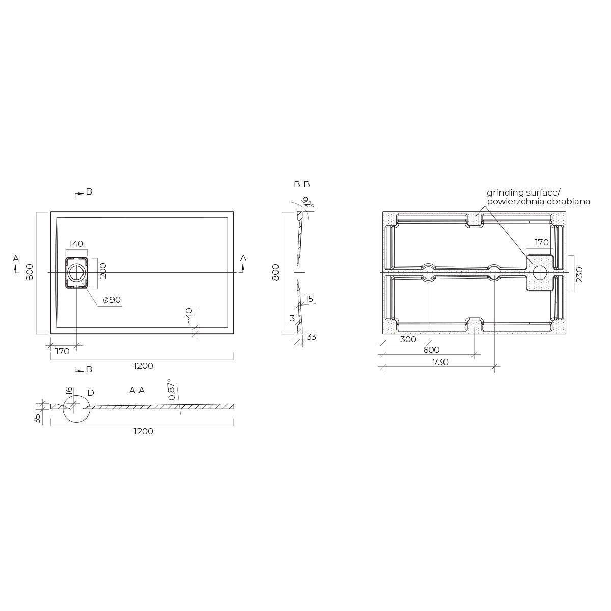 - Möglichkeit, die Duschwanne auf nicht standardmäßige Maße zuzuschneiden (in Eigenregie)