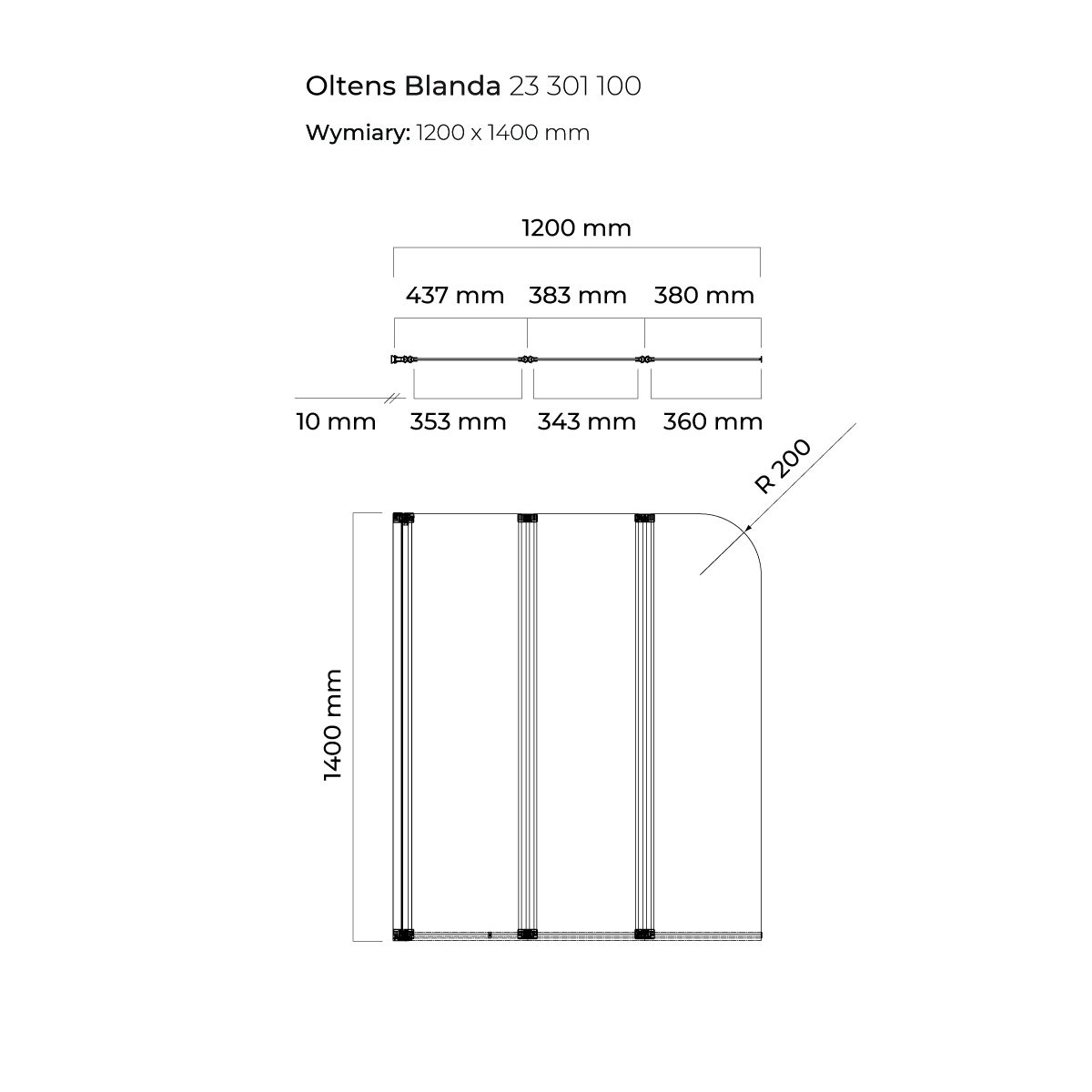 Oltens Blanda Badewannenabtrennung 120 cm dreiteilig chrom Glanz/durchsichtiges Glas 23301100