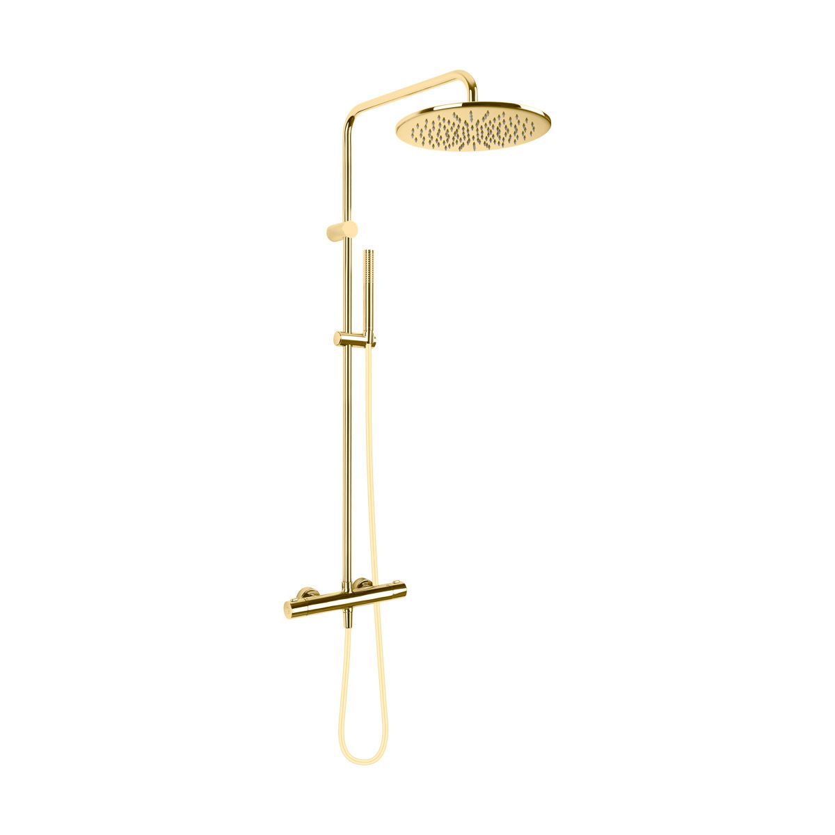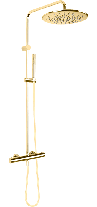 Oltens Boran Duschset Wandmontage mit Thermostat mit Regenbrause goldener Glanz 36502800