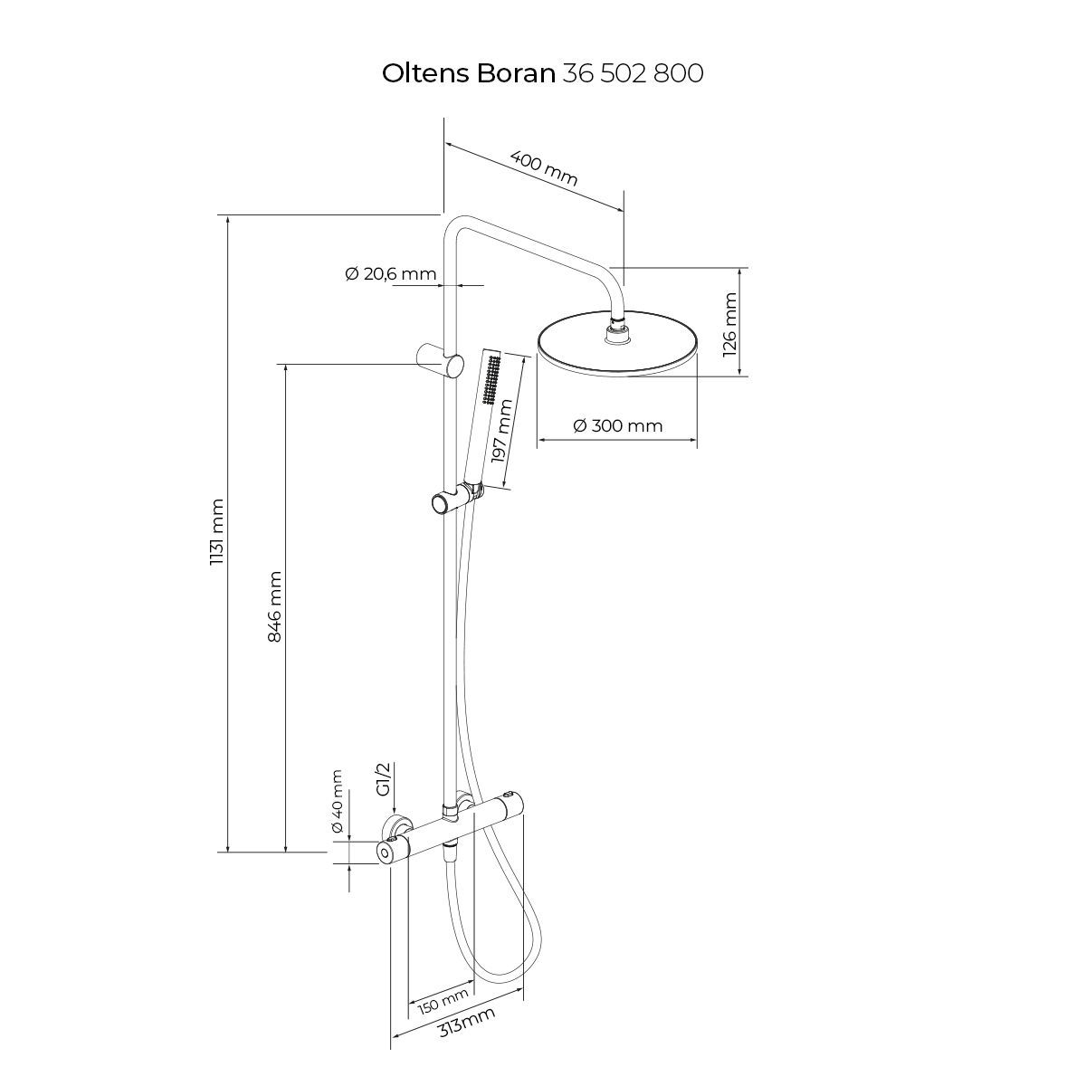 Duschset in einem minimalistischen und modernen Stil, der ideal für Bäder mit einem solchen Charakter ist Statten Sie also Ihr Bad mit einem Oltens Boran‑Brauseset mit einer runden Regenbrause aus. Dieses Modell ist perfekt für den Dusch‑ und Wannenbereich, wo es mit einer passenden Badewannenabtrennung einen Ersatz für die Dusche schafft.