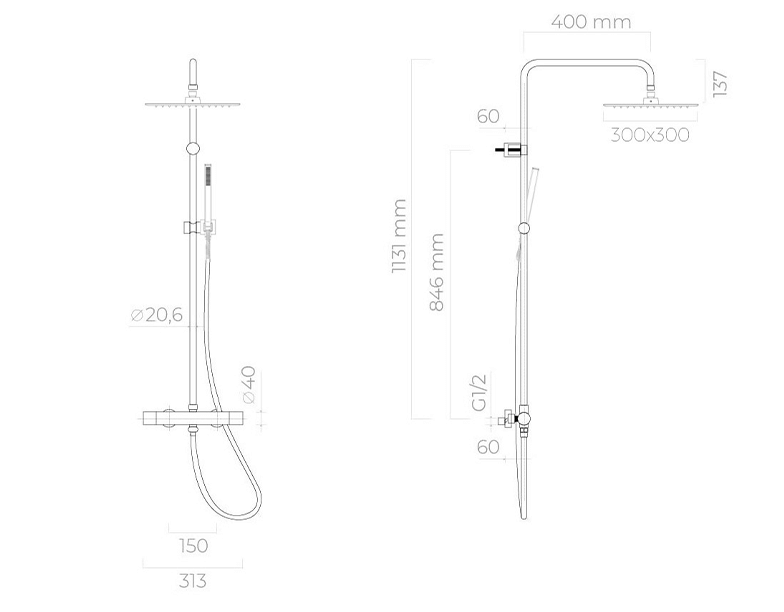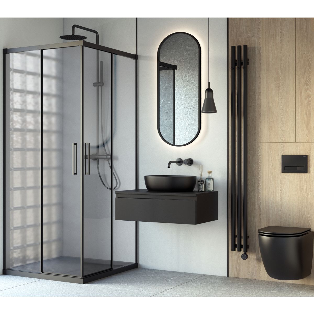 Oltens Boran Duschset Wandmontage mit Thermostat mit Regenbrause schwarze Matte 36502300