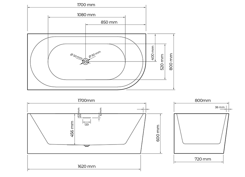 Die stromlinienförmige Form, die abgerundeten Kanten und der konturierte Innenraum machen jedes Bad äußerst komfortabel. Das Ganze ist aus weißem, mit Laminat verstärktem Acryl hergestellt, so dass die Badewanne Ihnen viele Jahre lang dienen wird und leicht sauber zu halten ist. Der Ablauf mit Klick‑Klack‑Stopfen ist in der Mitte platziert. Der Stopfen wird standardmäßig in Chrom geliefert. Wir haben eine Reihe von Abdeckungen im Angebot, so dass die StopfenFarbe individuell gestaltet werden kann. Diese Abdeckungen sind in Gold (09002800) und Schwarz (09002300) erhältlich.