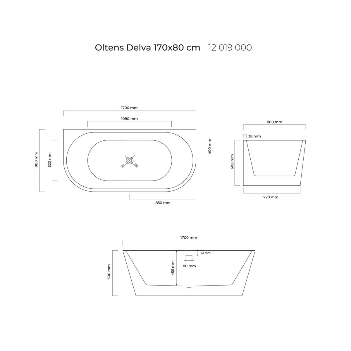 Oltens Delva Wandmontierte Badewanne 170x80 cm oval weiß 12019000