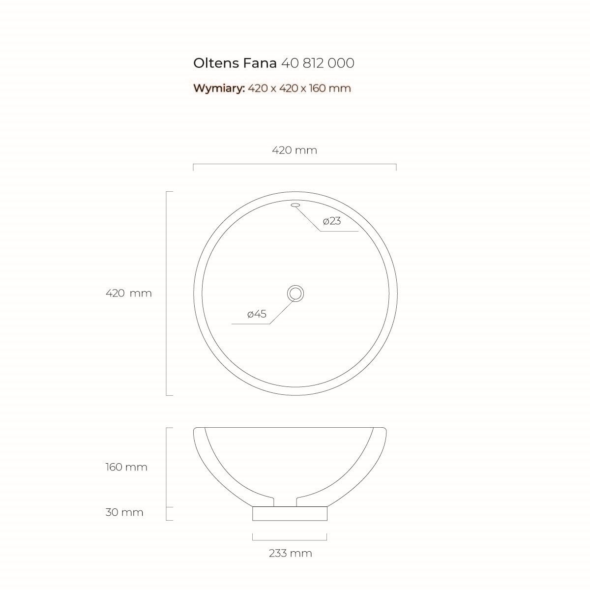 Oltens Fana Waschbecken 42x42 cm rund Aufsatzwaschbecken weiß 40812000