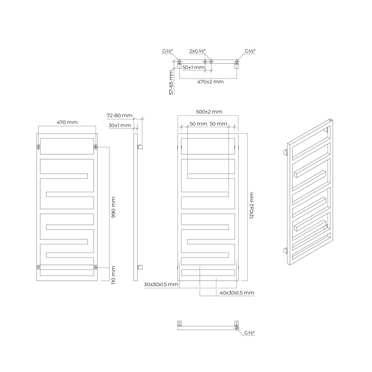 - Anschluss mit einem Abstand von 47 cm für den unteren Anschluss, der sich in den vertikalen Achsen der Heizkörperkollektoren befindet