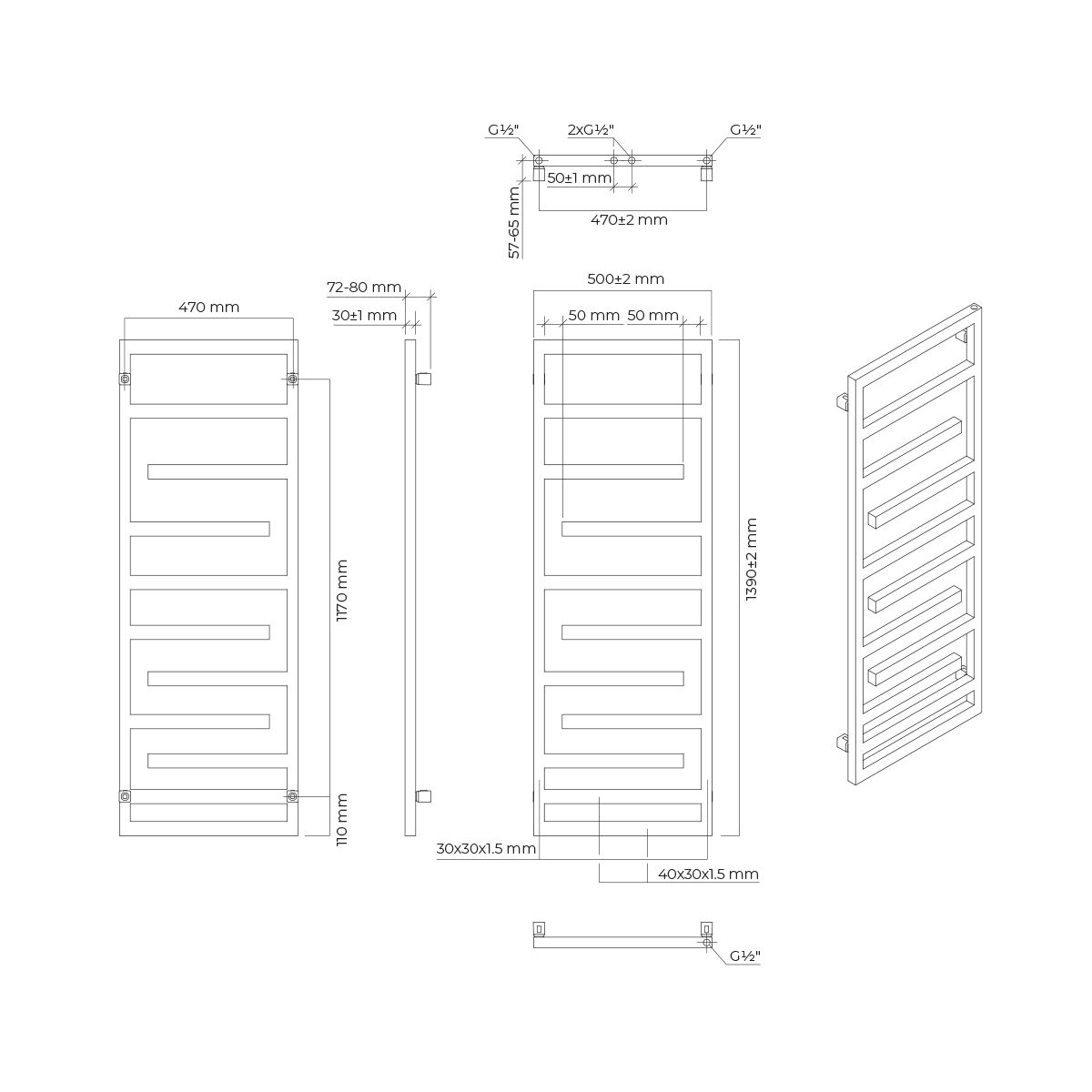 Oltens Flamma Badezimmerheizkörper dekorativ 139x50 cm schwarz 55016300