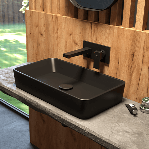 Oltens Forde Waschbecken 51x40.5 cm rechteckig Aufsatzwaschbecken schwarz 40803300