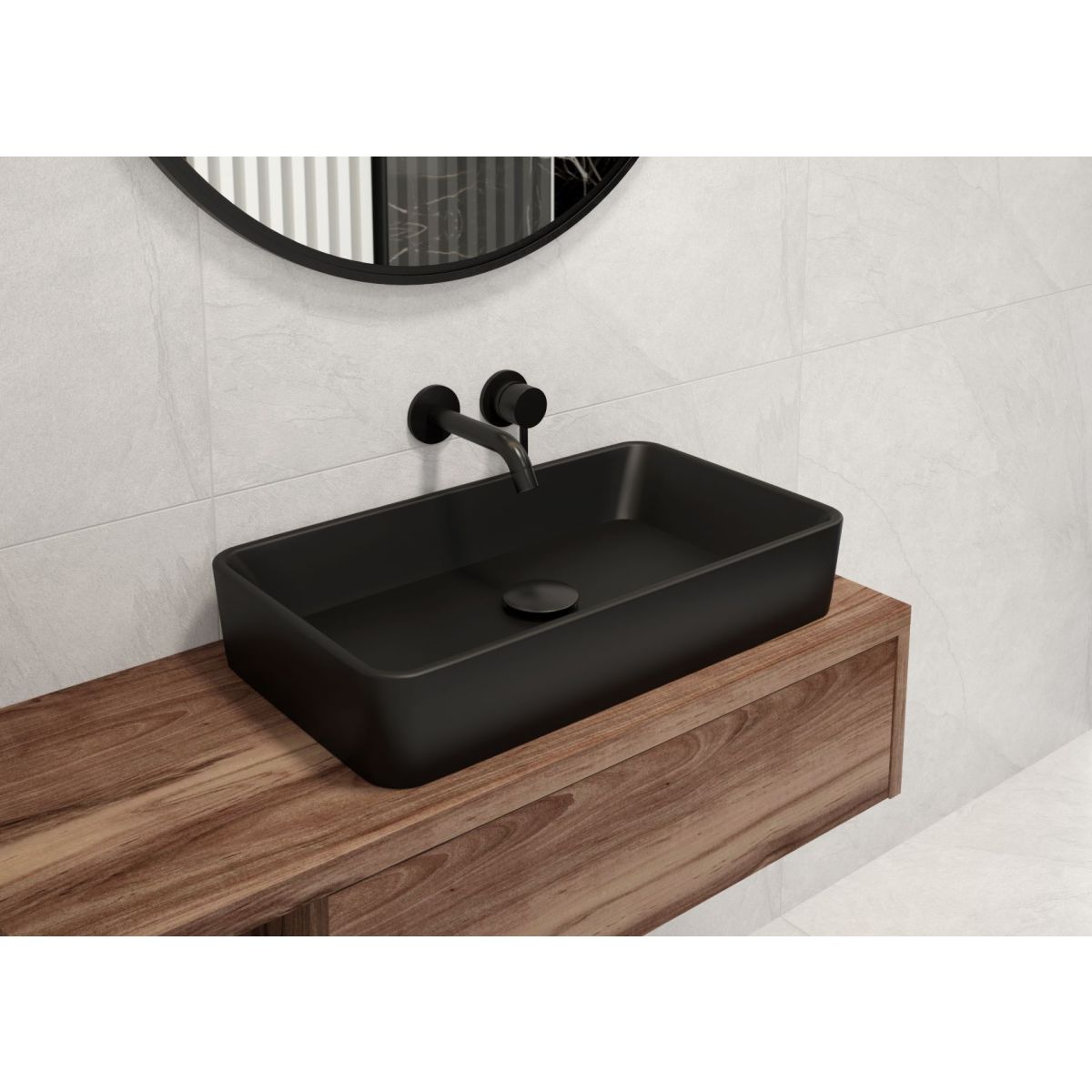 Der Waschtisch Forde hat eine rechteckige Form mit abgerundeten Ecken und den Maßen 51x40,5 cm, die einen hohen Nutzungskomfort gewährleisten. Die Höhe von 11 cm verhindert ein versehentliches Überfluten der Arbeitsfläche. Dieses Modell passt besonders gut zu der auf dem Anordnungsfoto gezeigten Wand‑, Stand‑ oder Unterputzarmatur (Oltens Molle 32600300).