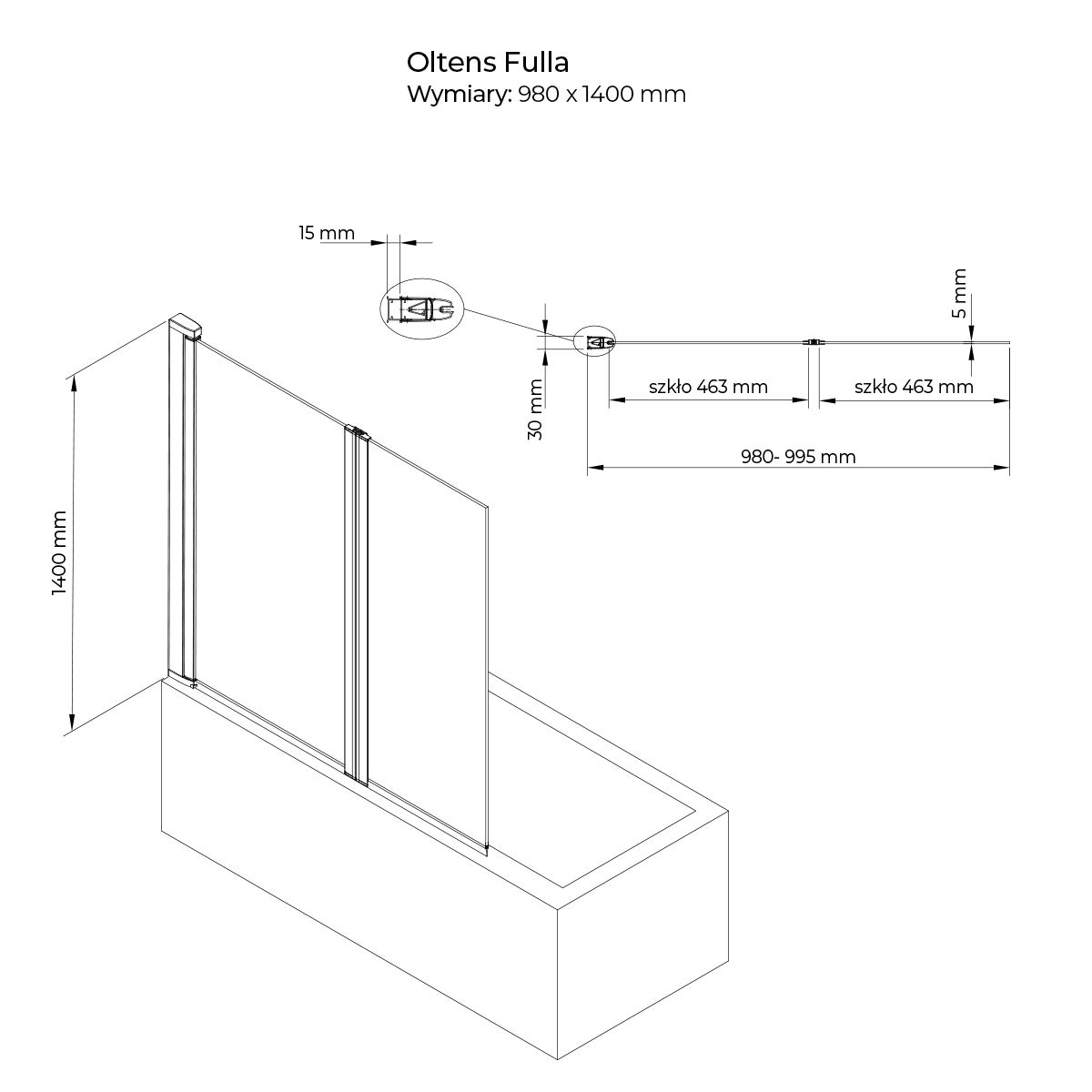 Oltens Fulla Badewannenabtrennung 98 cm zweigeteilt chrom Glanz/durchsichtiges Glas 23204100