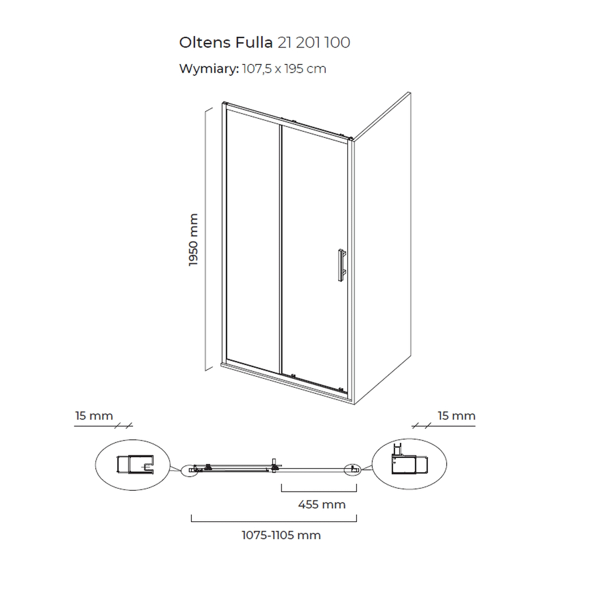 Zweiteilige Schiebetür. Minimale ‑ maximale Breite 107,5‑110,5 cm (Einstellmöglichkeiten 30 mm).