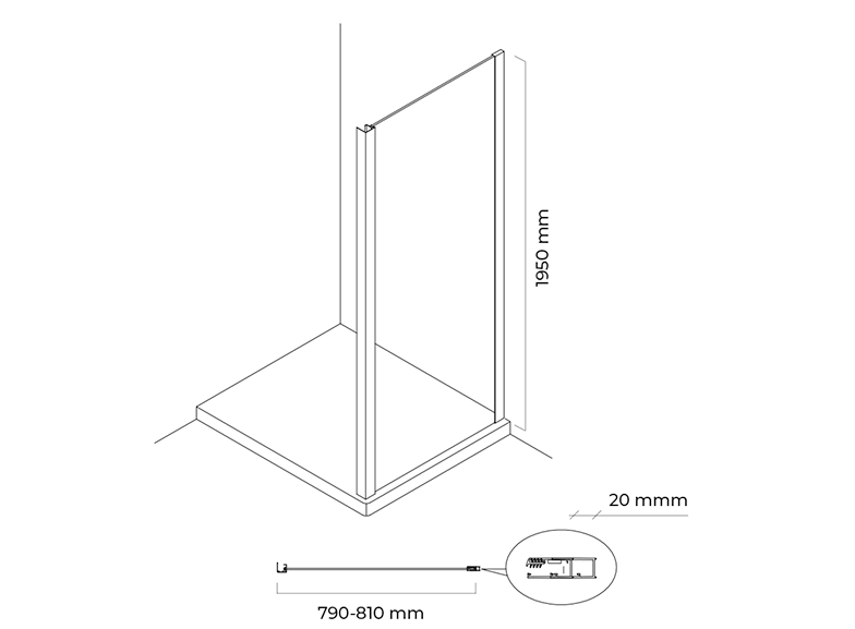 Montageseite ‑ rechts oder links (universal). Einstellmöglichkeiten 20 mm, verstellbar 77,5‑79,5 cm. Seitliche Duschwand, die mit einer Duschtür kombiniert werden kann Fulla.