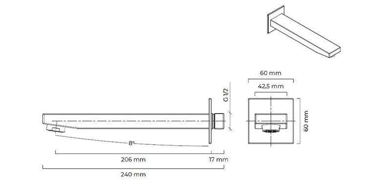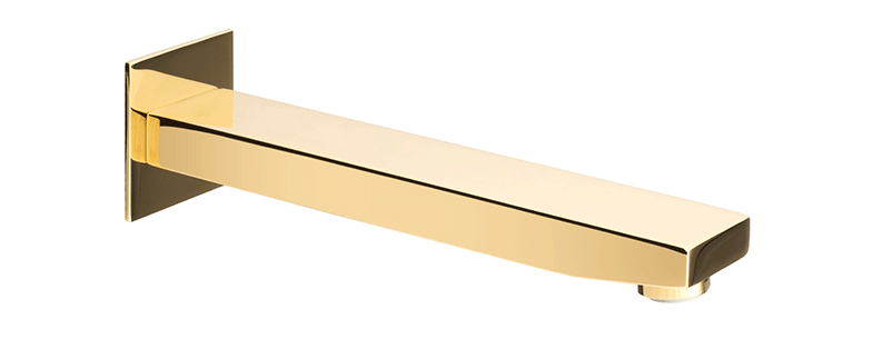 Złota Badewannenauslauf Oltens Gota für die Wandmontage ist ideal für die Unterputz‑Badewannen‑ und Duscharmaturen der Serie Gota.