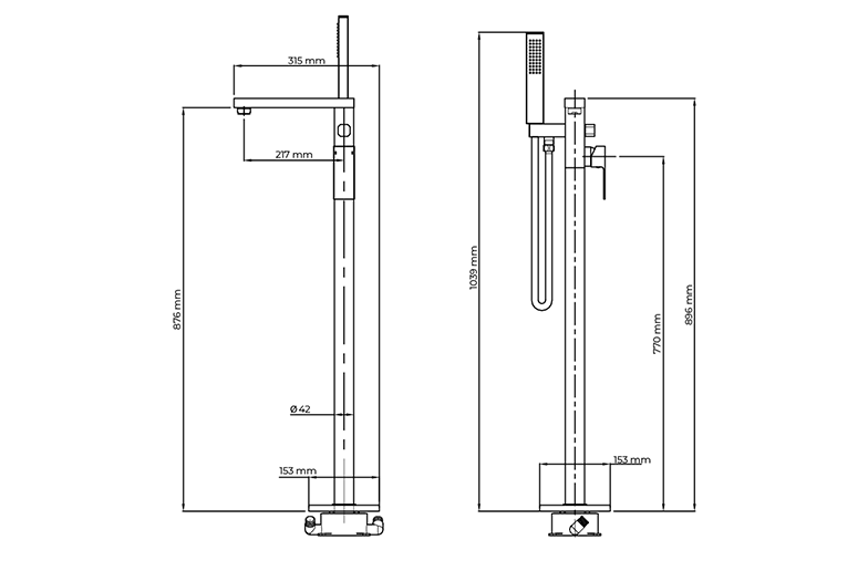 Oltens Gota Badewannen- und Duscharmatur freistehend goldener Glanz 34301800